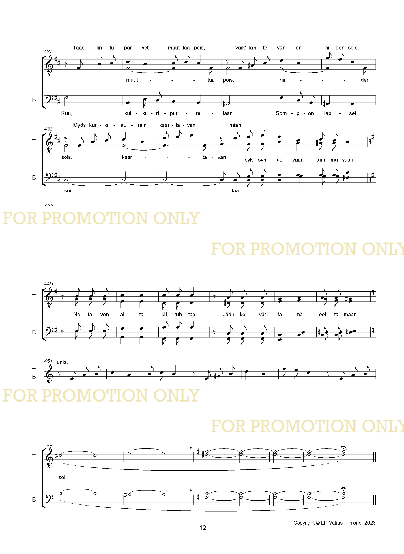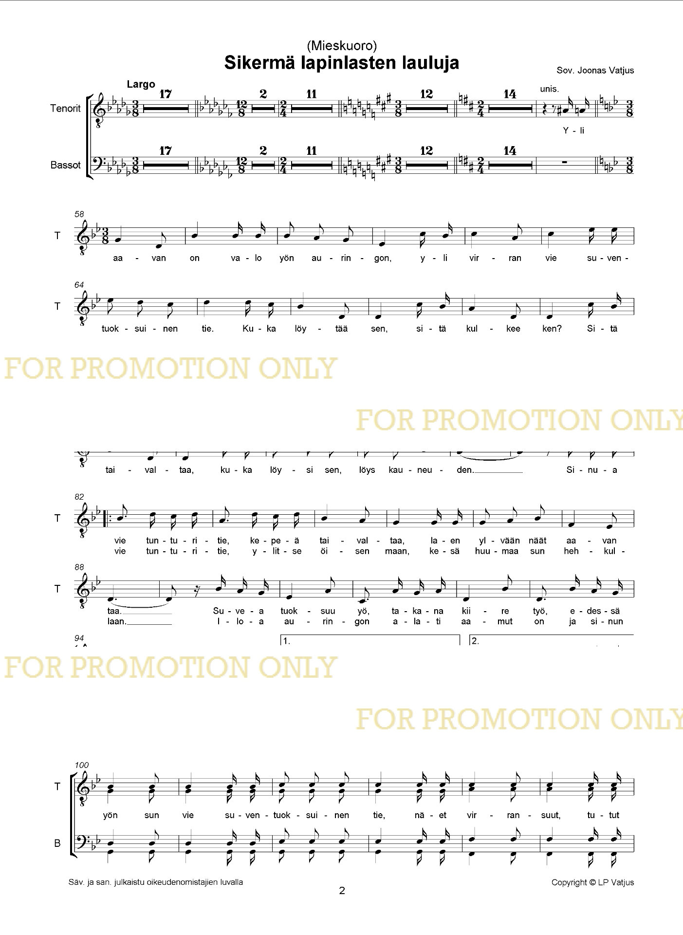 Sovitus mieskuorolle ja pianolle.